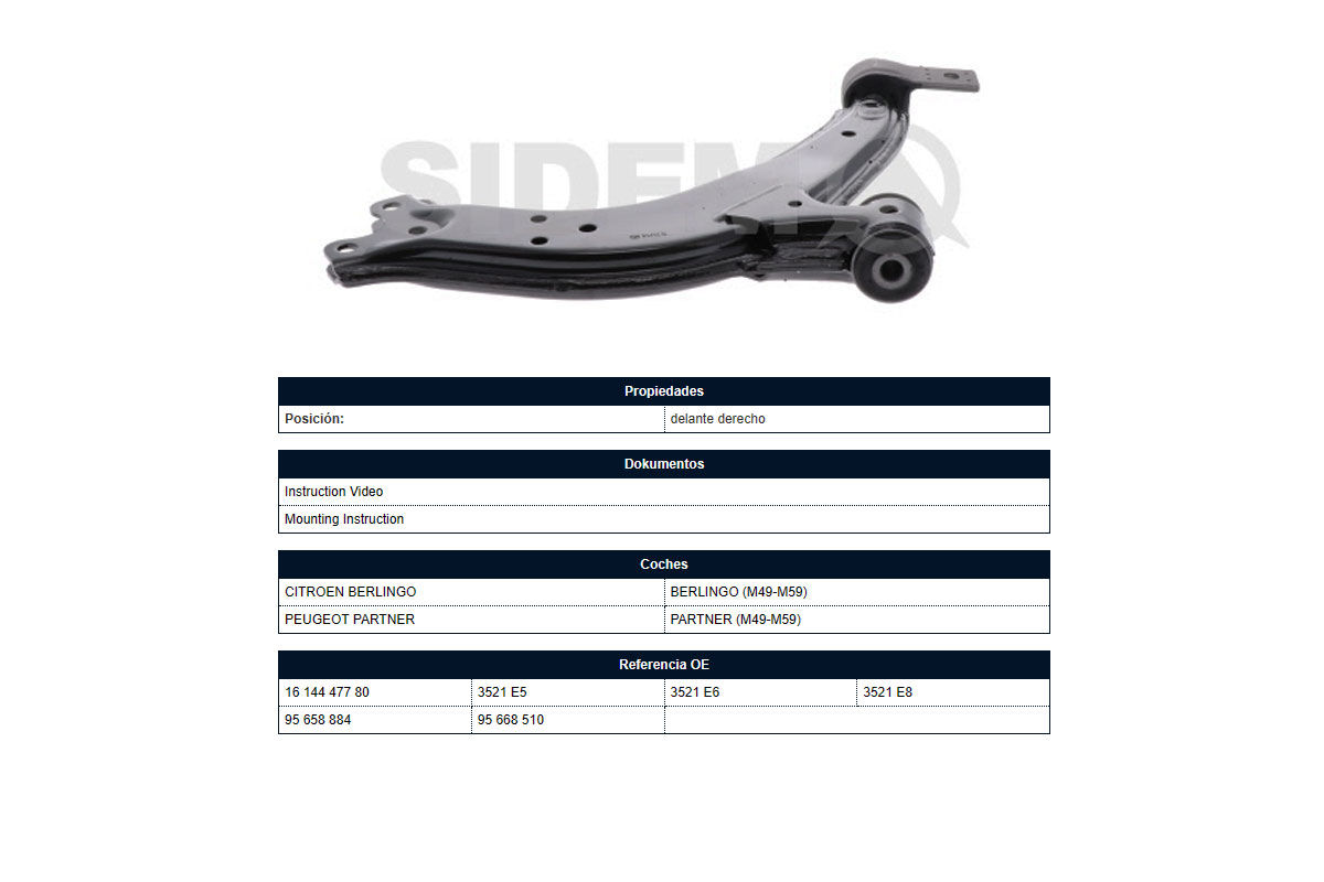 | PEUGEOT | PARTNER | 1.4 Motor TU3JP 75HP CORROCERIA M49/1996-2003 | SUSPENSION | PARRILLA DE SUSPENSION DELANTERA 1 |