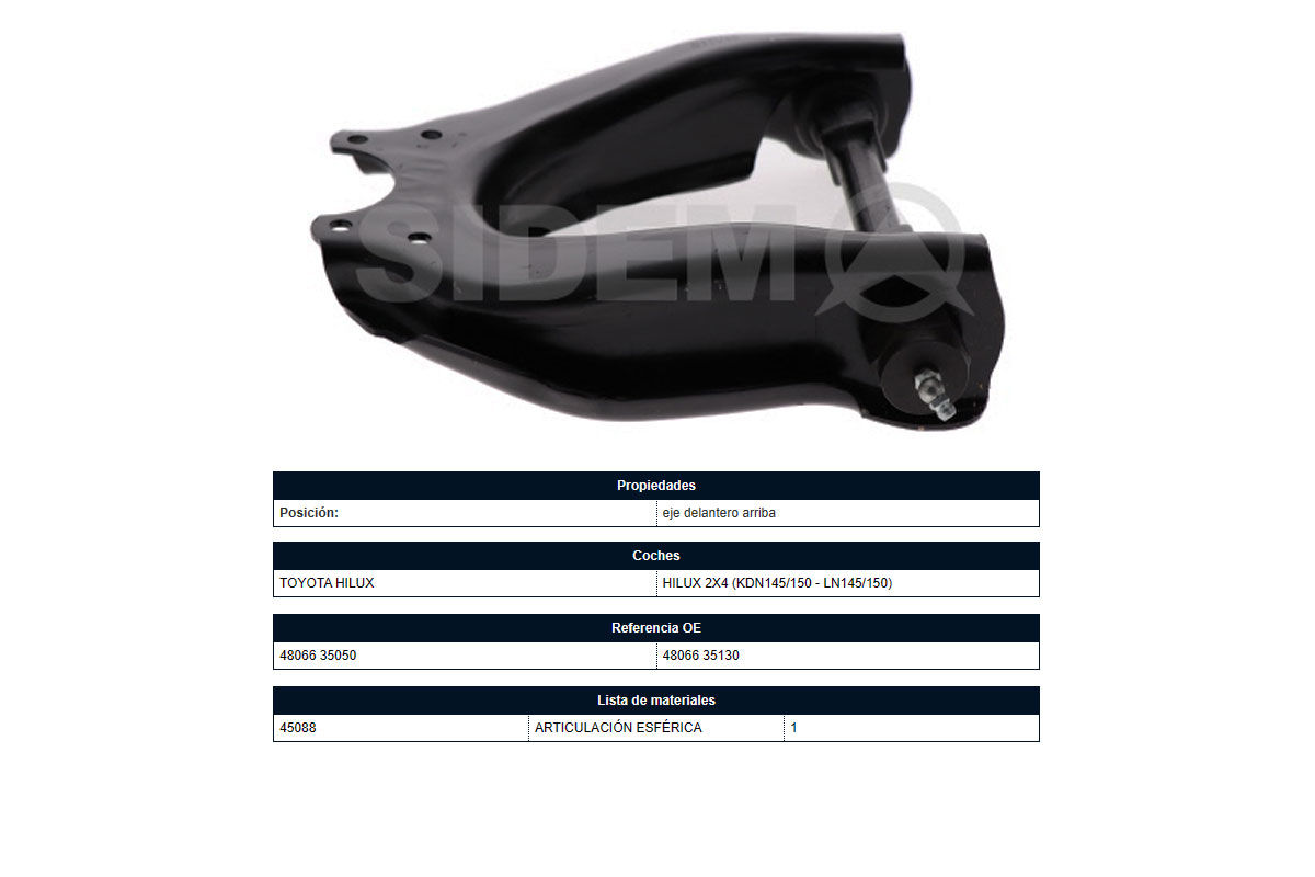 TOYOTAHILUX2.8 Diesel Motor 3L 87HP 4x2/1997-2000SUSPENSIONPARRILLA DE SUSPENSION DELANTERA