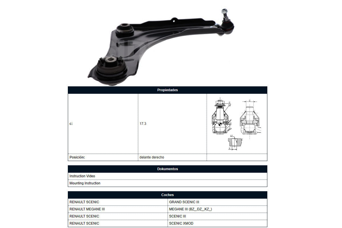 Parilla De Suspension Delantera Renault Megane 08-10 Der