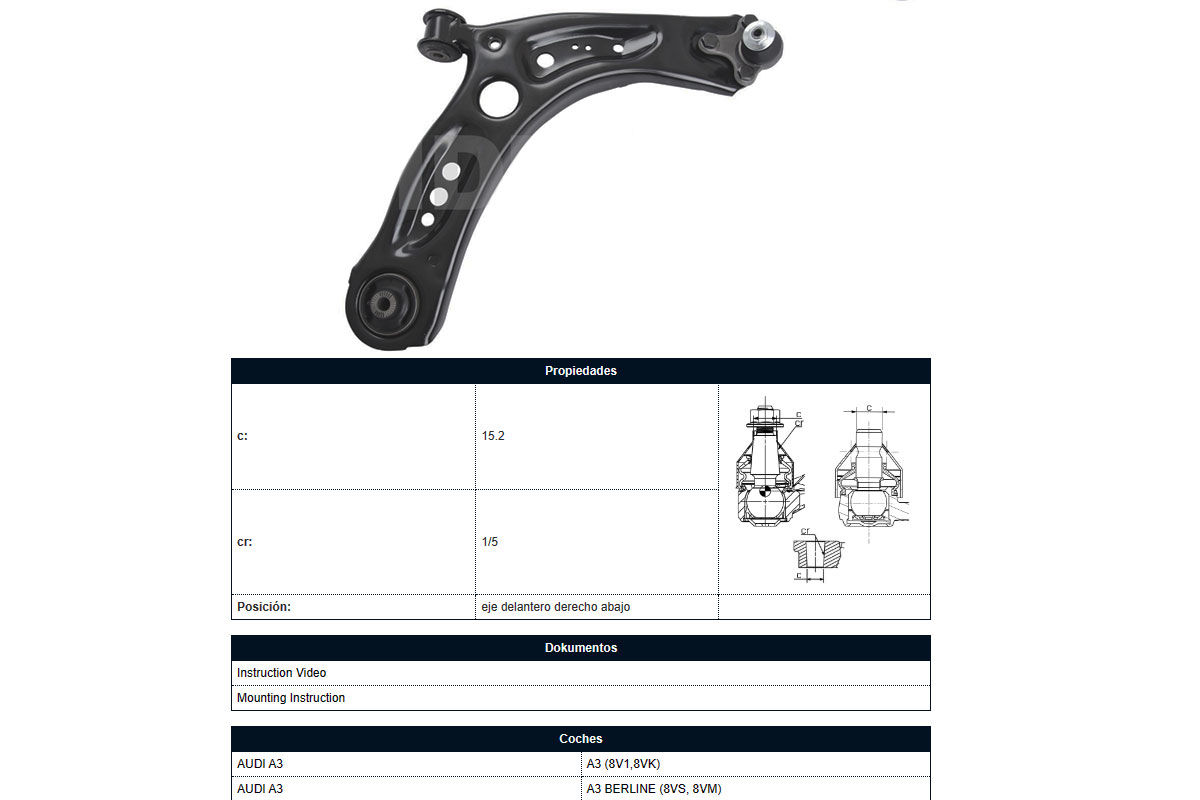 Parilla De Suspension Delantera Audi A3 10-13 Der