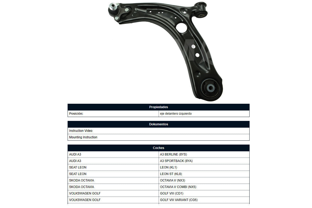 Parilla De Suspension Delantera Audi A3 13-18 Izq