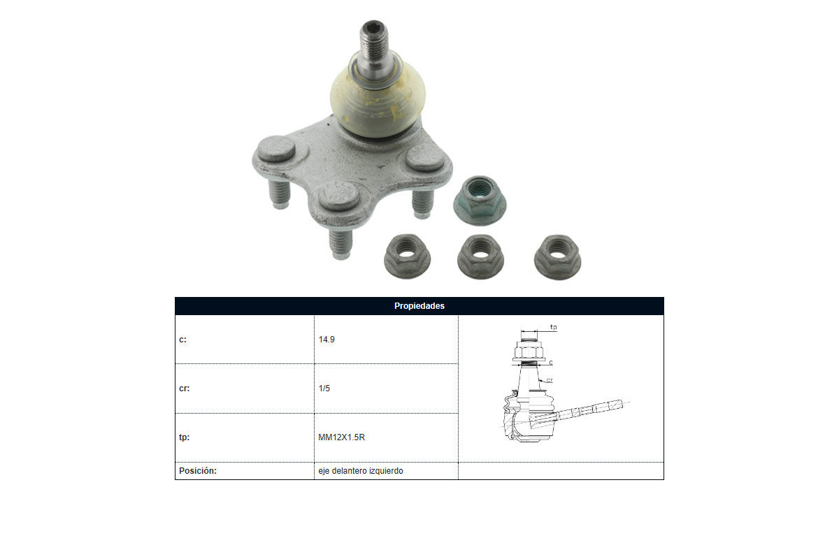 | VOLKSWAGEN | UP | 1.0 12Valv. 75 CV tres cilindros Motor CHYB/2015-2025 | SUSPENSION | ROTULA |