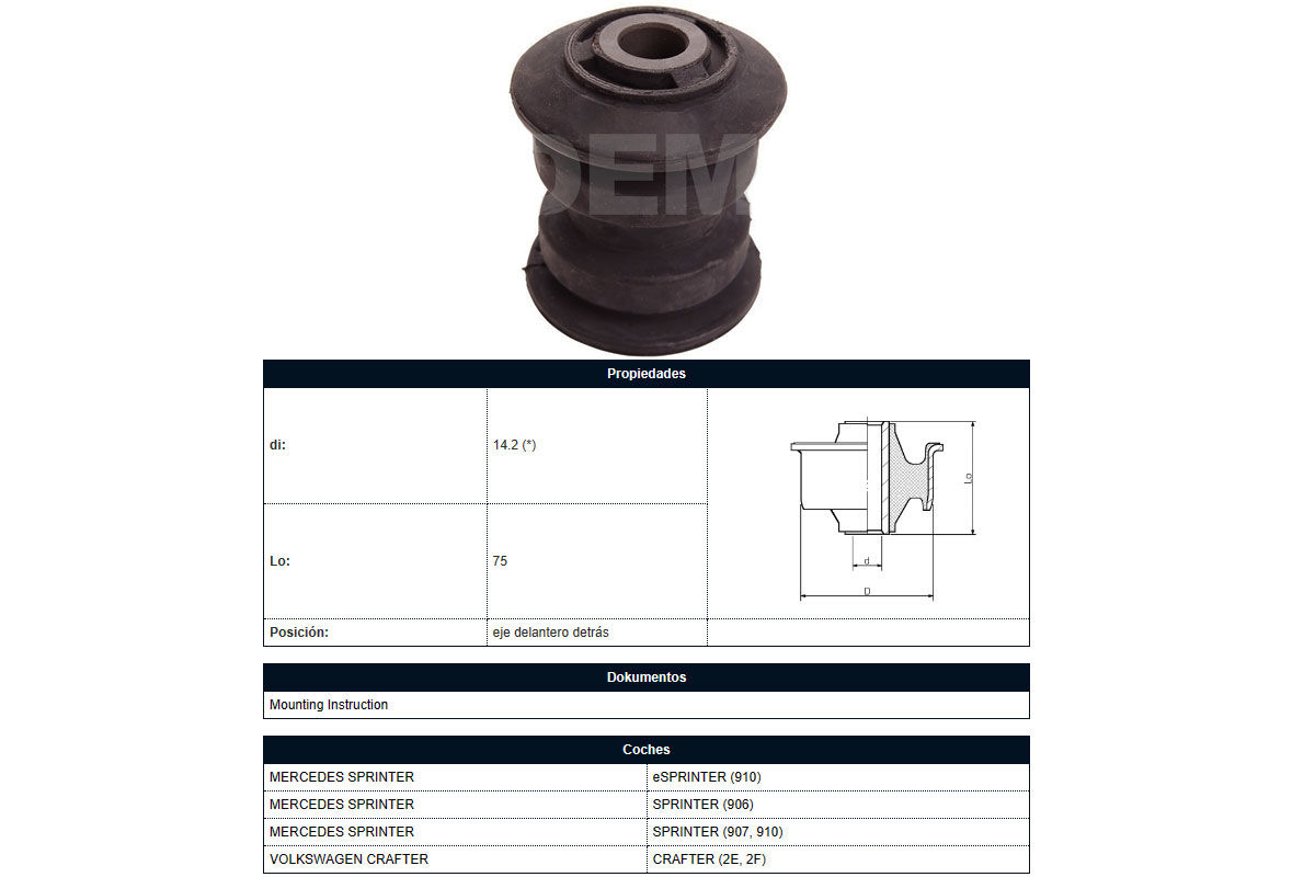 | MERCEDES BENZ | SPRINTER 313CDi - 413 Cdi doble rueda trasera | 2.1 CDI Motor OM611LA 129HP/2004-2009 | SUSPENSION | BUJE 1 |
